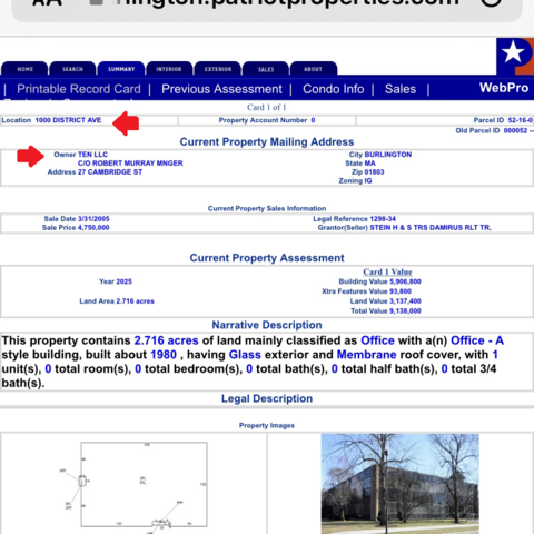 Robert Murray is a trustee of the Cambridge Financial Group. This document reports his other holdings. He is a 100% owner of both Cafe Escadrille and Ten LLC, which is the owner of 1000 District Ave, the ICE facility.